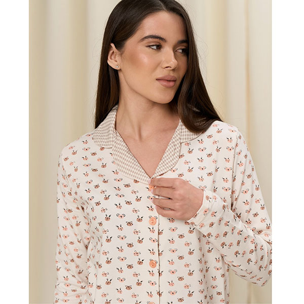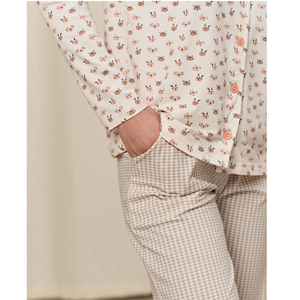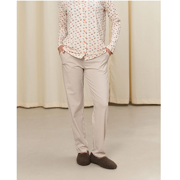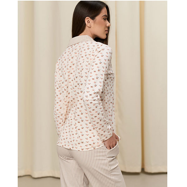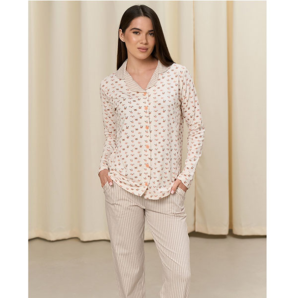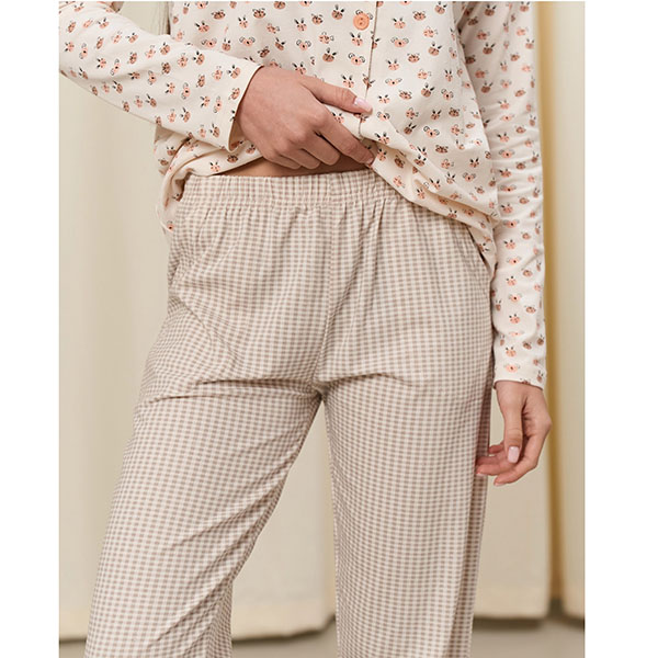 Піжама жіноча штані і сорочка бежева малюнок 19178