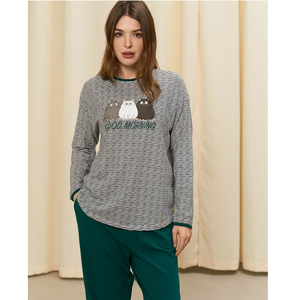 Піжама жіноча штани та джемпер бірюзова в смужку 19253