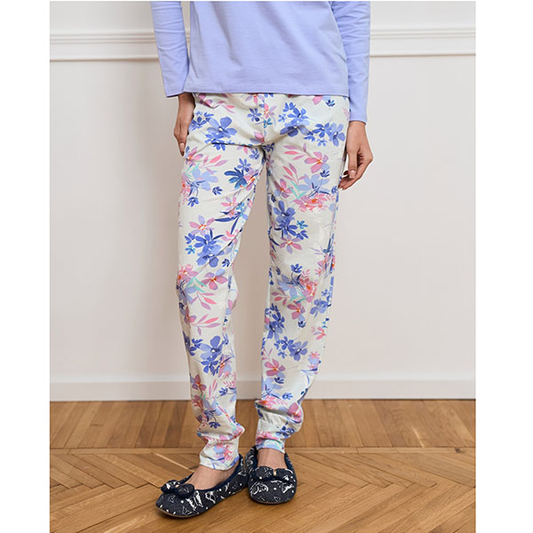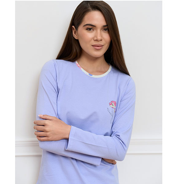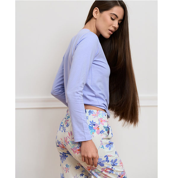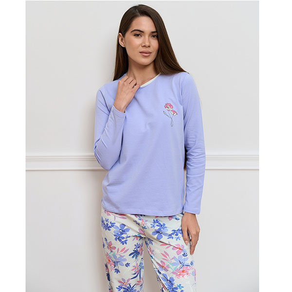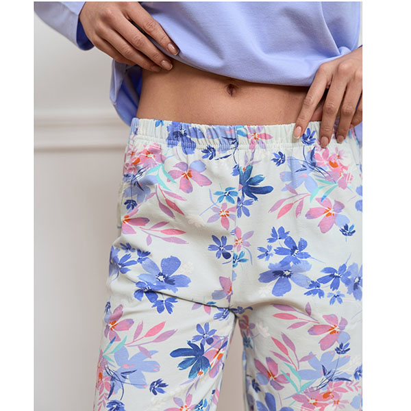 Піжама жіноча штани та джемпер блакитна Квіти 19254