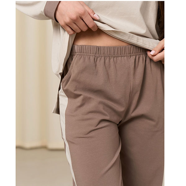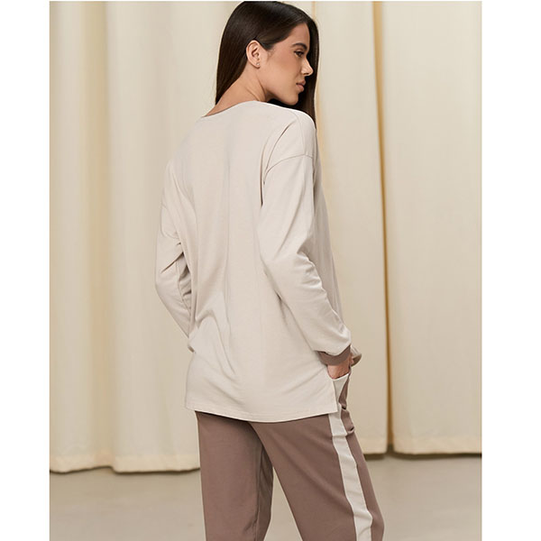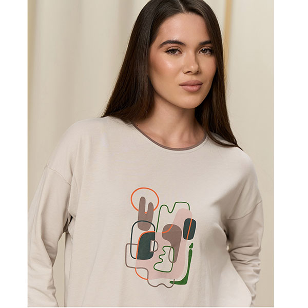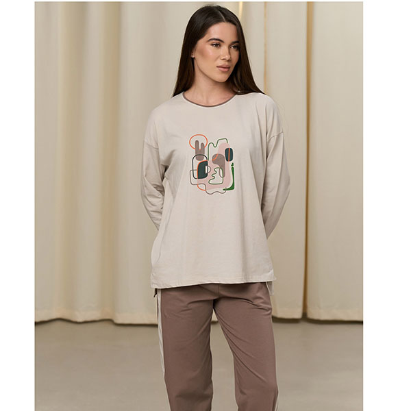 Піжама жіноча штани та джемпер бежева з малюнком 19255