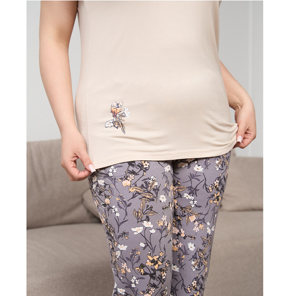 Піжама жіноча капрі та футболка з малюнком 19061