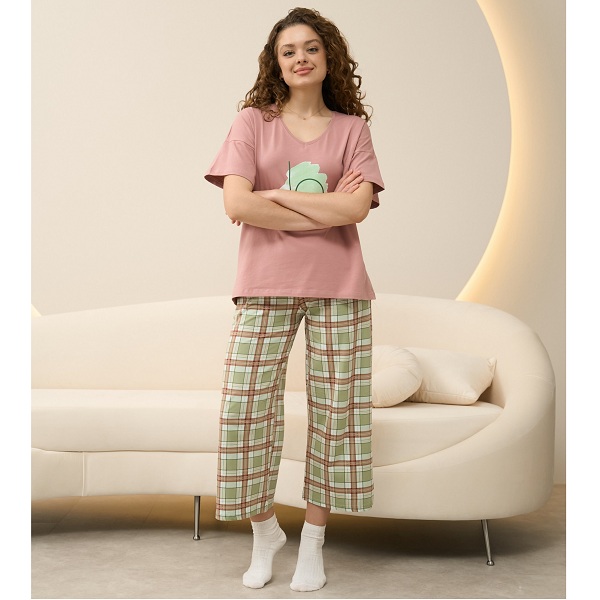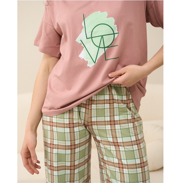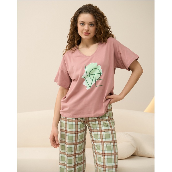 Піжама жіноча штани та футболка Клітинка 19071
