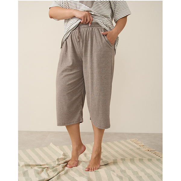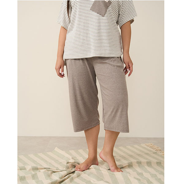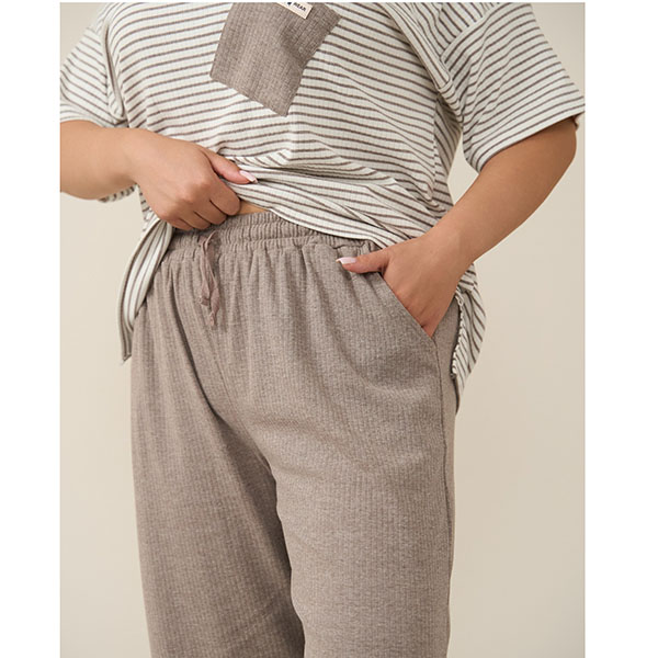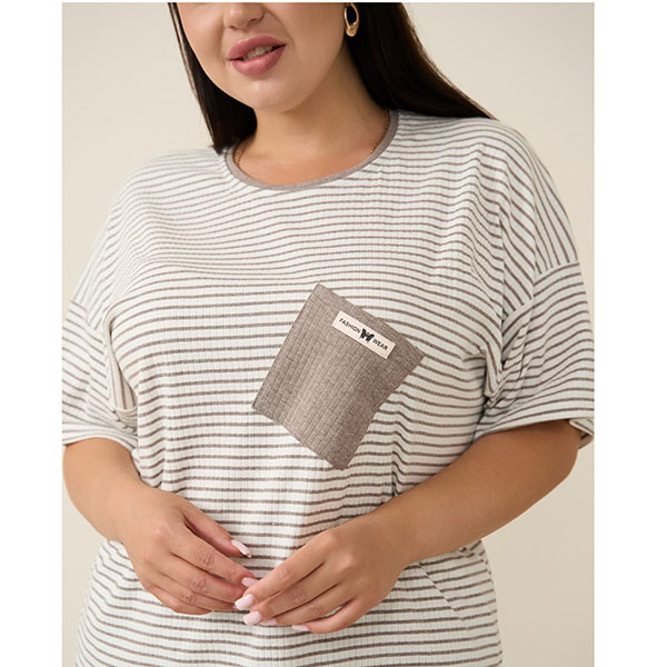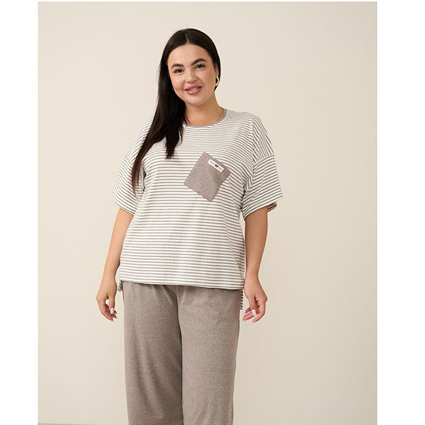 Піжама жіноча капрі та футболка в смужку бежева 19175