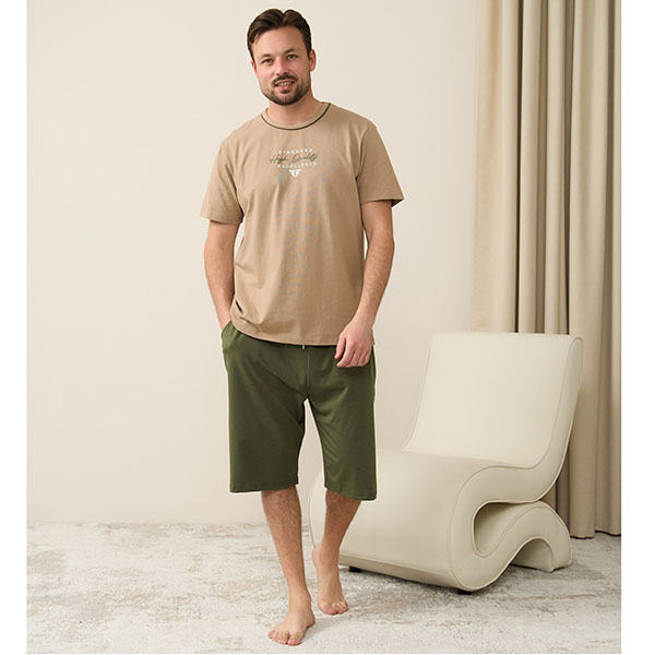 Піжама чоловіча шорти та футболка коричнева 19193
