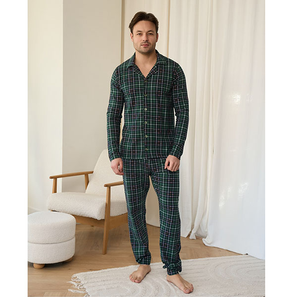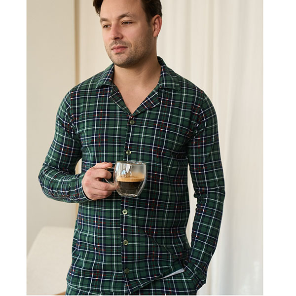 Піжама чоловіча штани та сорочка Хакі в клітинку 19218