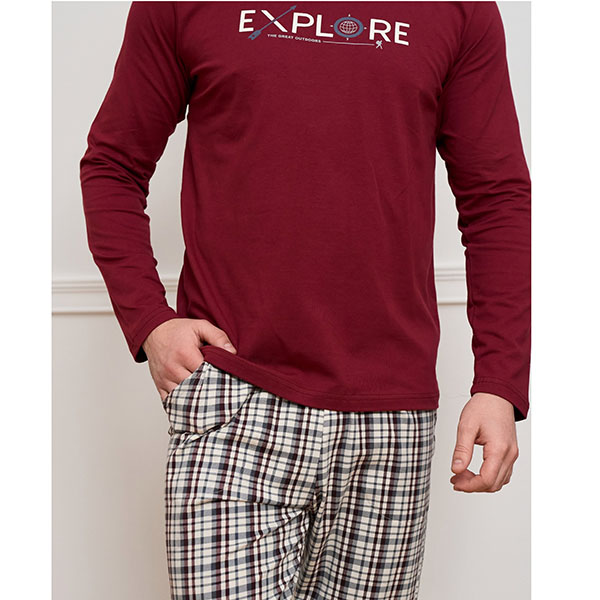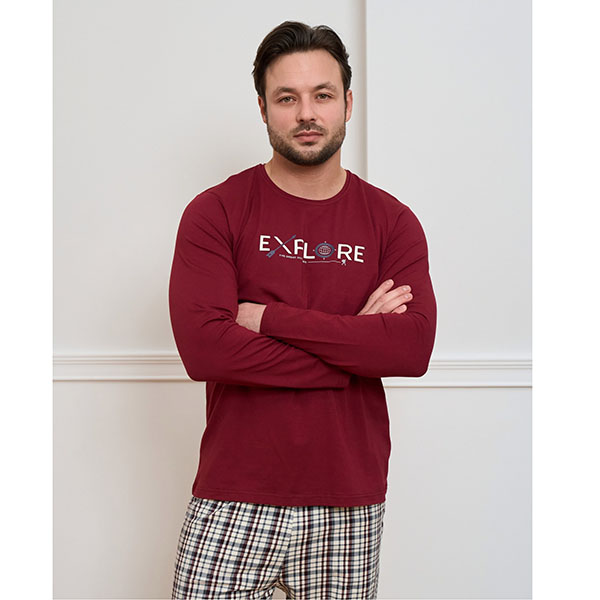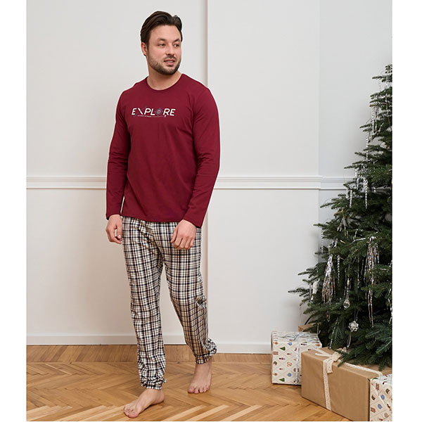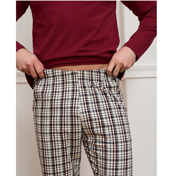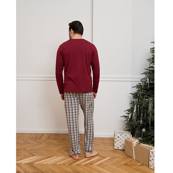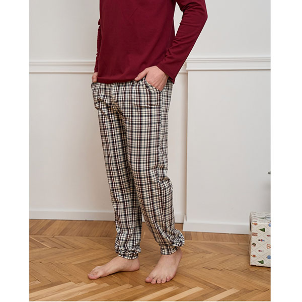 Піжама чоловіча штани та джемпер бордова в клітинку 19278