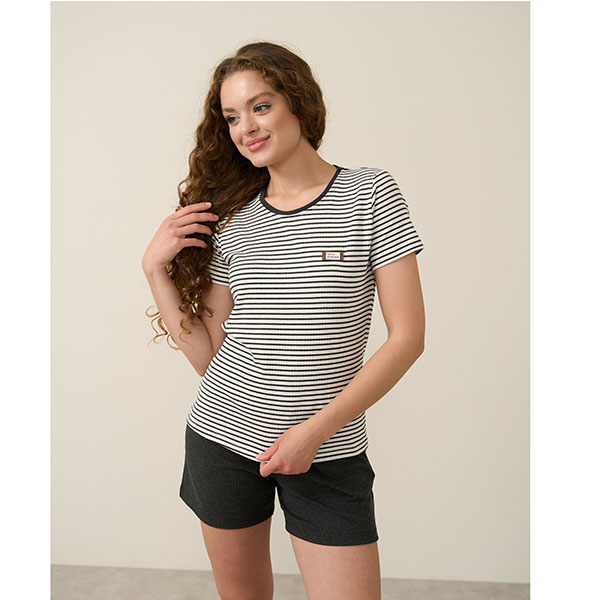 Піжама жіночий шорти і футболка темно-сіра в смужку 19184
