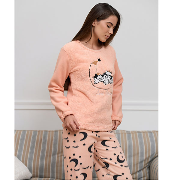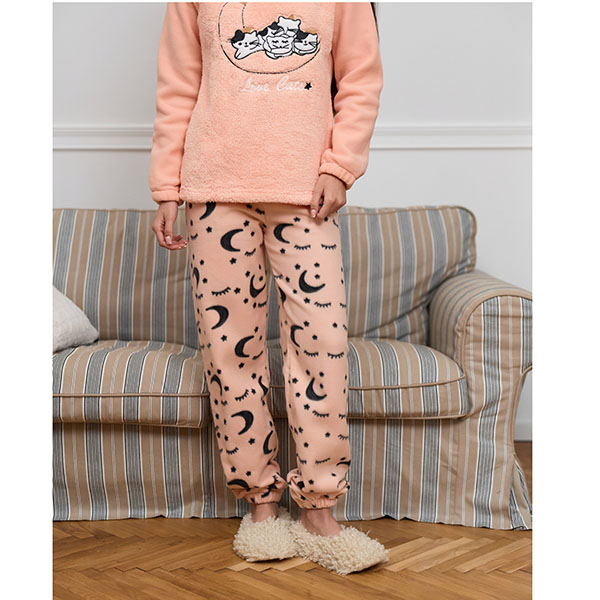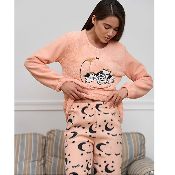 Піжама жіноча штани та джемпер на флісі Персикова 19234