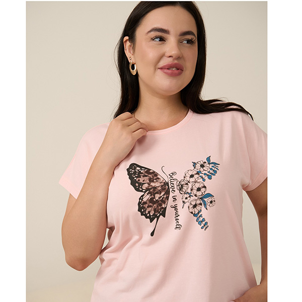 Піжама жіночій шорти та футболка бавовна Персикова 19329