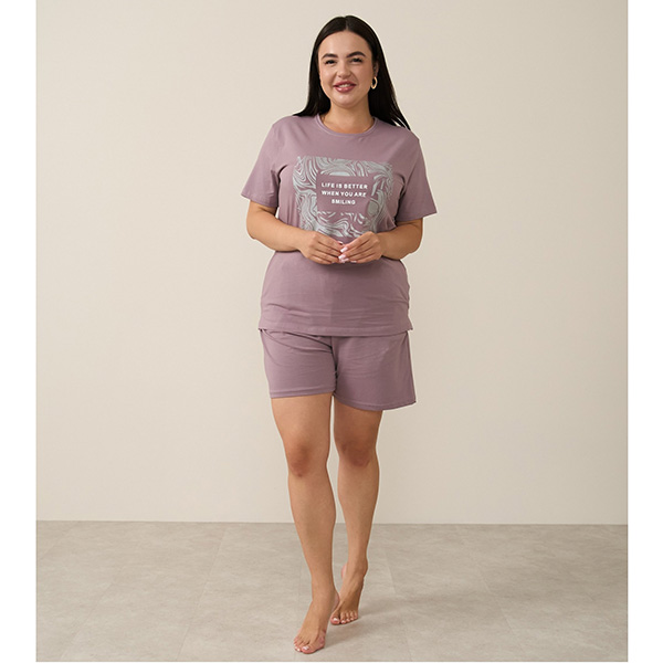 Піжама жіночій шорти та футболка бавовна Пудра 19354
