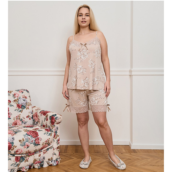 Жіноча піжама шорти та майка бежева 19391