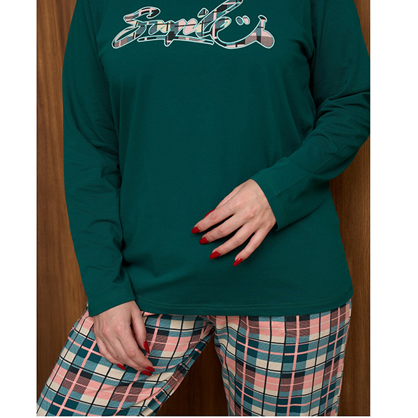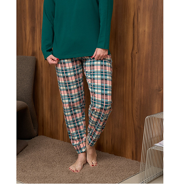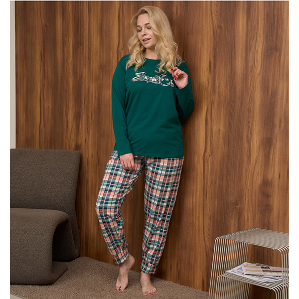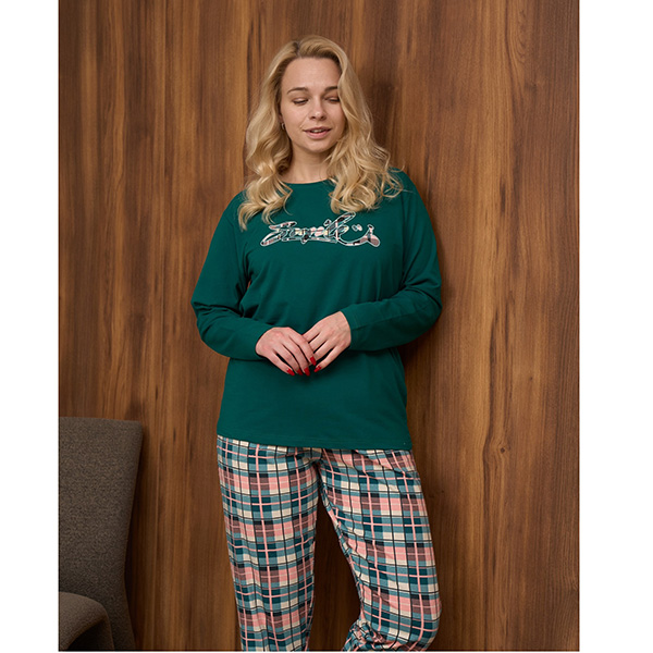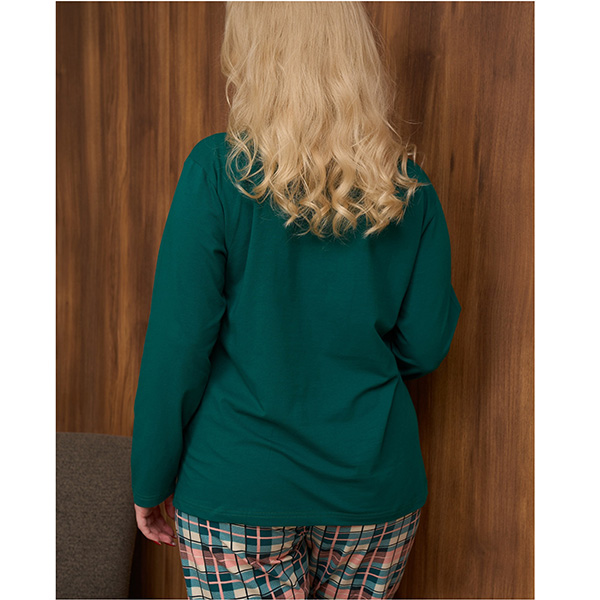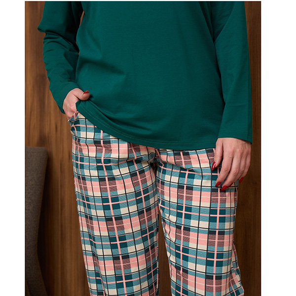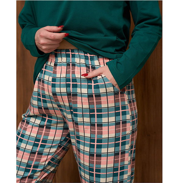 Піжама жіноча з штанами та джемпер з довгим рукавом, бирюзова в клітинку - для сну та будинку.