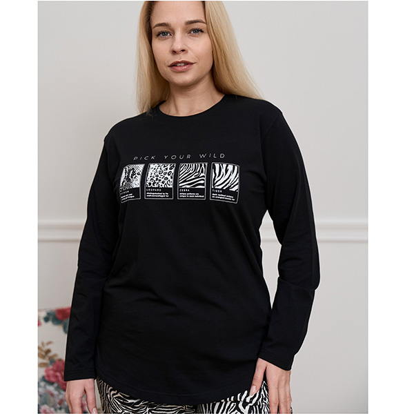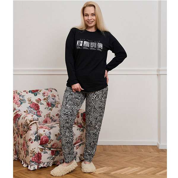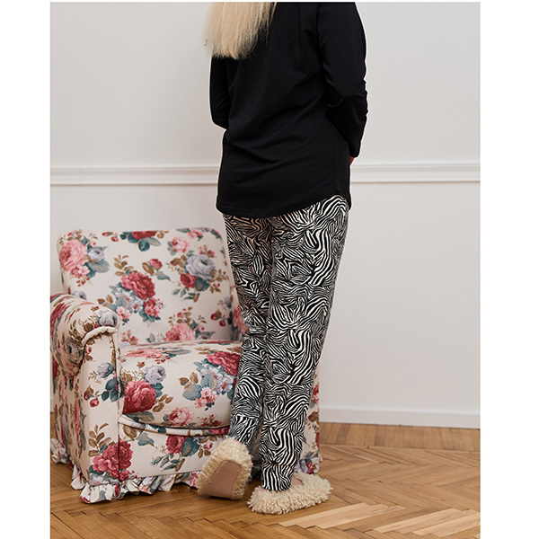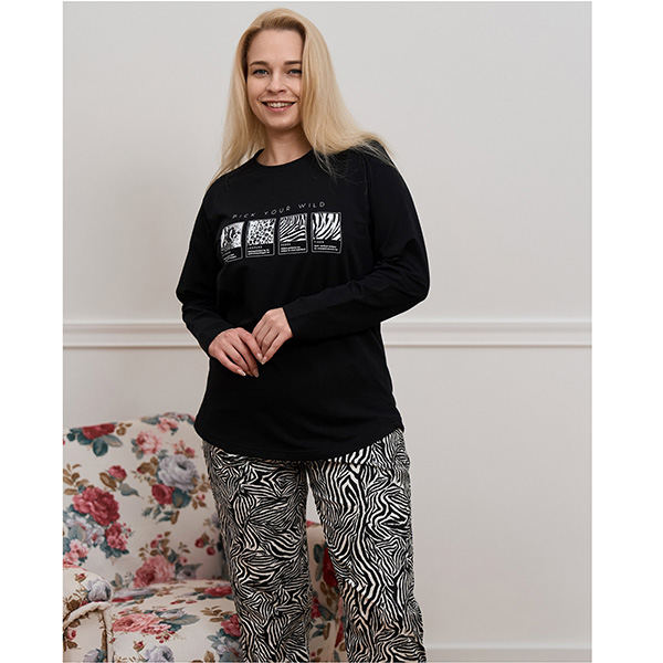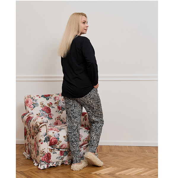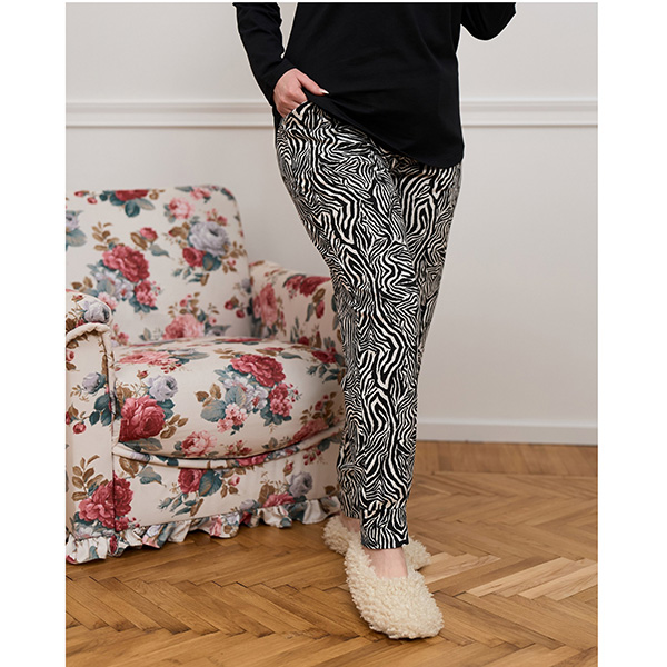 Піжама жіноча з штанами та джемпер з довгим рукавом, чорна принт зебра - для сну та будинку.