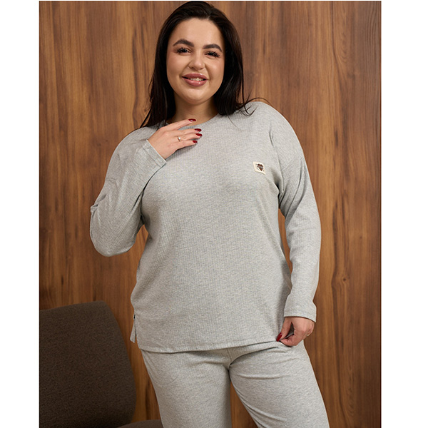 Піжама жіноча штани та джемпер сіра в рубчик 19415