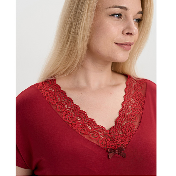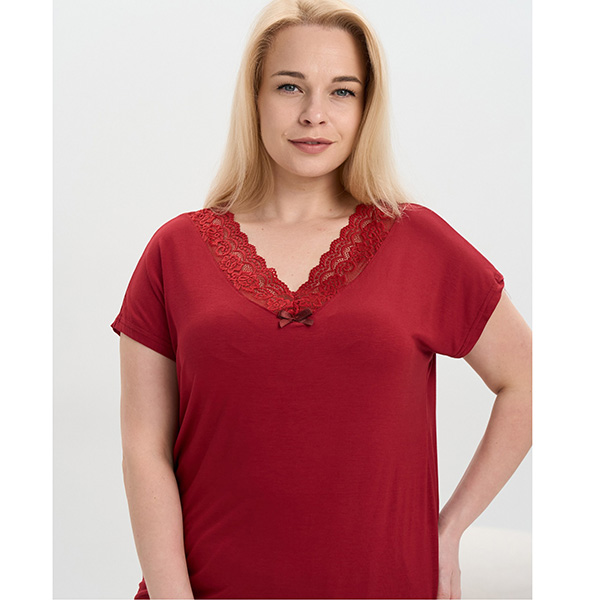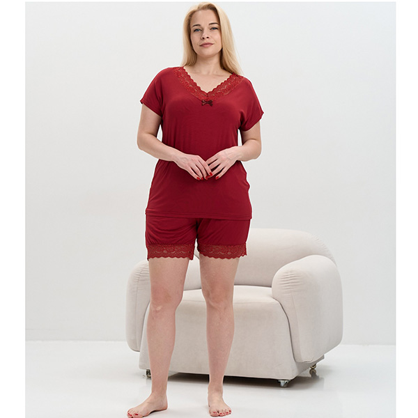 Жіноча піжама шорти та футболка бордова 19455