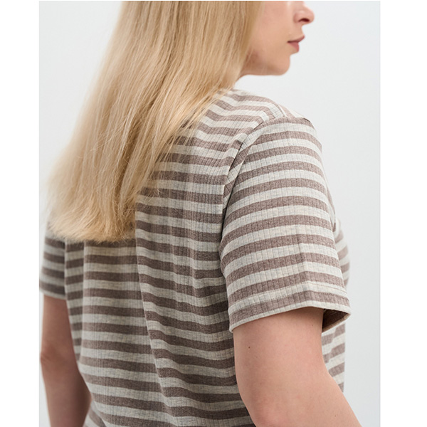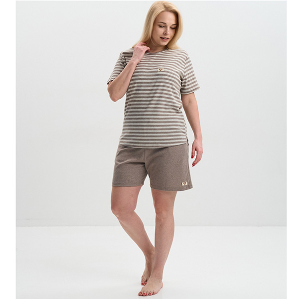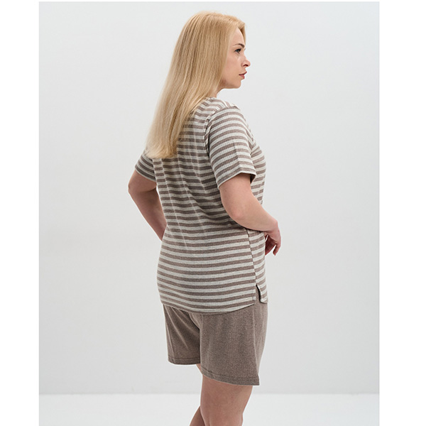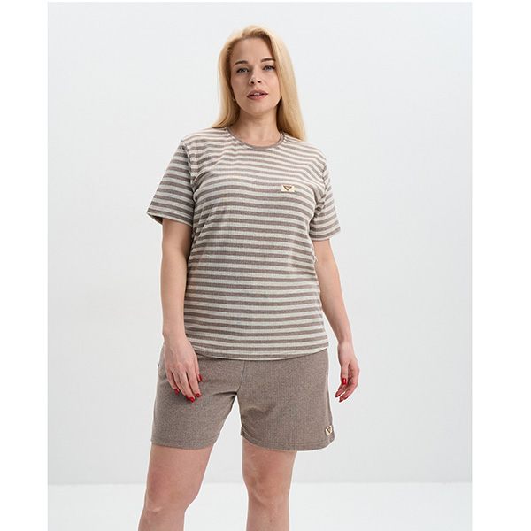 Жіноча піжама шорти та футболка бежева в смужку 19457