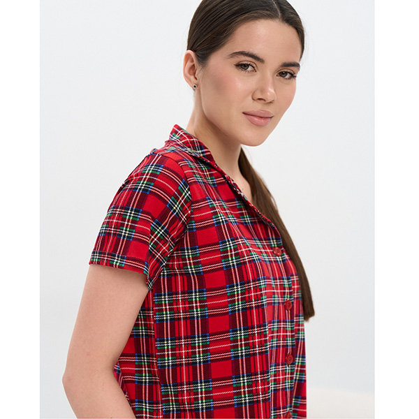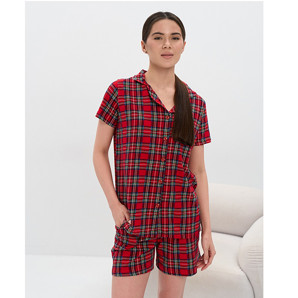 Піжама жіноча шорти та сорочка червона в клітинку 19463