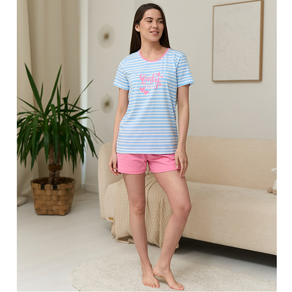 Піжама жіноча шорти футболка сіра в смужку 19713